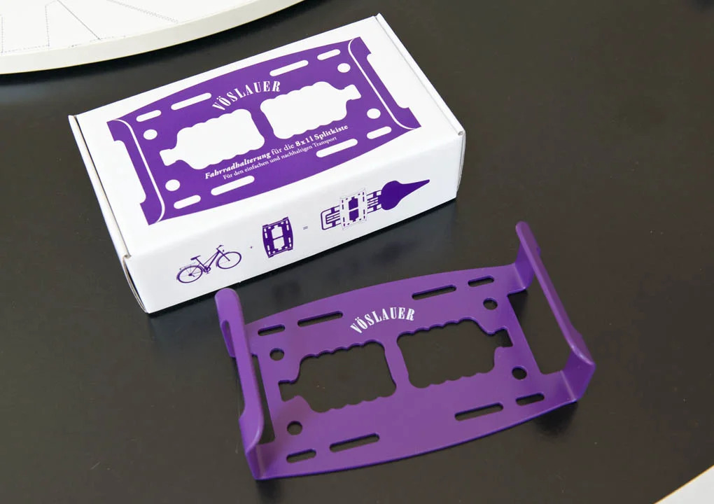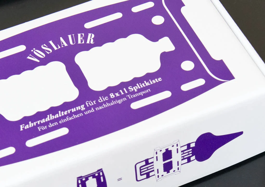 The new easy to fix bike mount makes sustainable transport of the 1l glass returnable bottles by Vöslauer possible. It was designed and engineered for the Split-box, fits every usual bike with a carrier and enables you to transport 2x4 glass bottles on your bike – safe and sustainable.