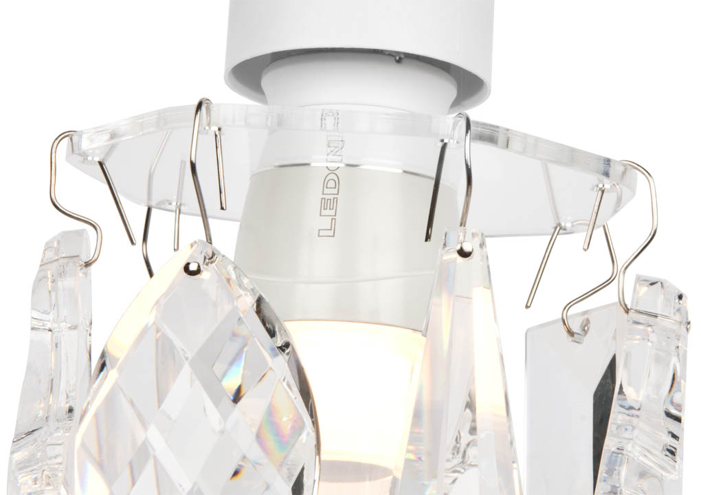 The world’s smallest, smartest and sweetest chandelier gets even smaller with only 7 handcut Austrian crystals, even smarter adapting to the ground-breaking LED technology using a 3W bulb/270 Lumen or a 6W bulb/470 Lumen and even sweeter because it saves a lot of energy while letting you dip into the same atmosphere.